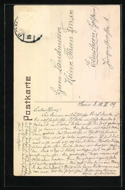 alte Ansichtskarte, gelaufen, Briefmarke entfernt, guter Zustand