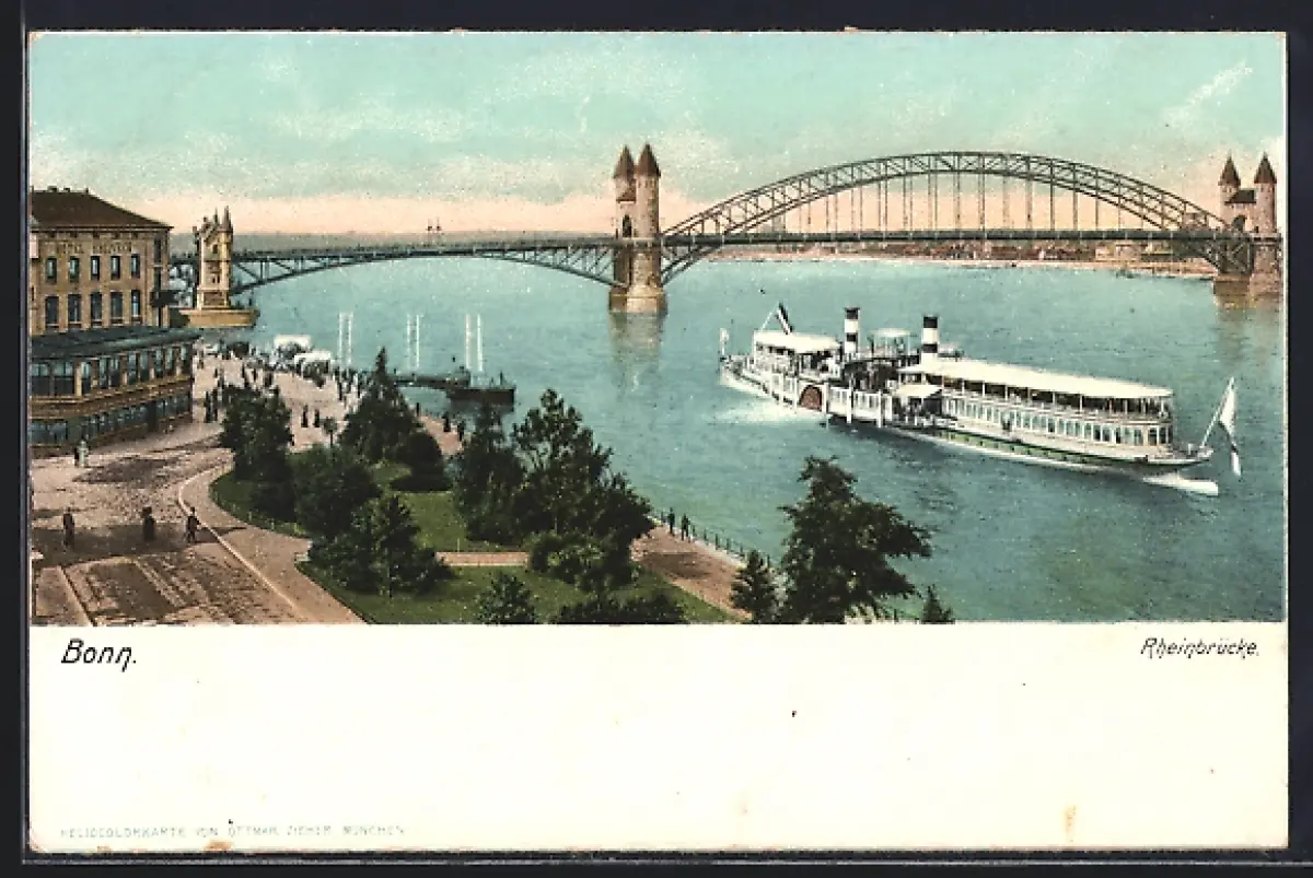 AK Bonn a. Rh., Dampfer vor der Rheinbrücke