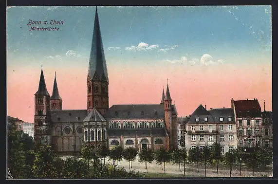 AK Bonn a. Rh., Münsterkirche mit Nachbargebäuden u. Strasse