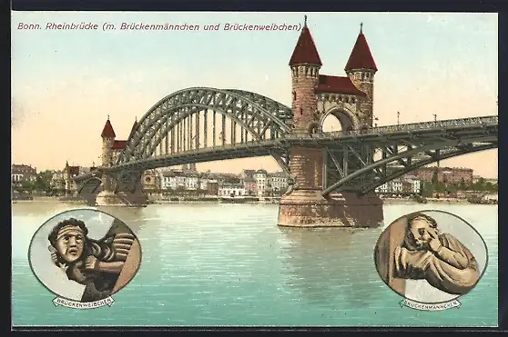AK Bonn a. Rh., Rheinbrücke, Brückenmännchen, Brückenweibchen