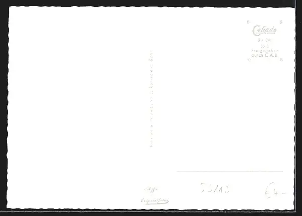 Personenbezogene Daten auf der Rückseite der Karte wurden durch blauen Textmarker unkenntlich gemacht. Die blauen Stellen sind auf die Vorderseite durchgeweicht und wirken sich negativ auf das Postkartenfoto aus