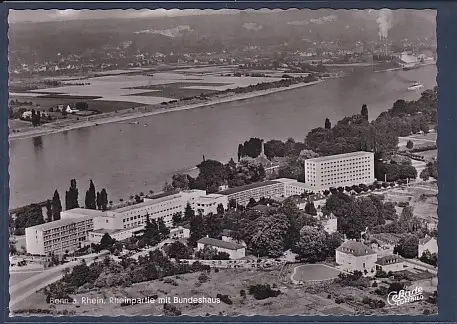 AK Bonn a. Rhein Rheinpartie mit Bundeshaus Luftbild, nicht gelaufen von ca. 1953