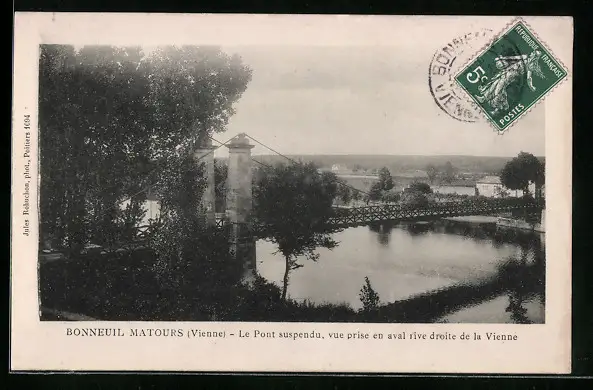 AK Bonneuil-Matours, Le Pont suspendu, Vue prise en aval rive droite de la Vienne