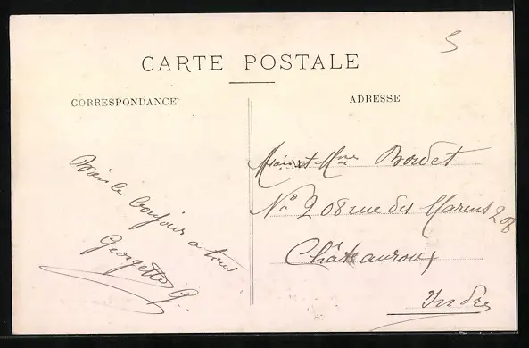 Personenbezogene Daten auf der Rückseite der Karte wurden durch blauen Textmarker unkenntlich gemacht. Die blauen Stellen sind auf die Vorderseite durchgeweicht und wirken sich negativ auf das Postkartenfoto aus