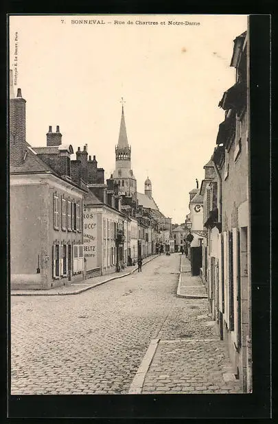 AK Bonneval, Rue de Chartres et Notre-Dame