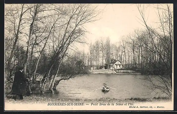 AK Bonnières-sur-Seine, Petit bras de la Seine et île