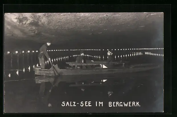 AK Boot auf einem Salz-See im Salzbergwerk