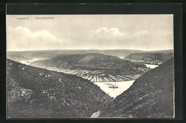 AK Boppard / Rhein, Vierseenplatz, Dampfer auf dem Rhein