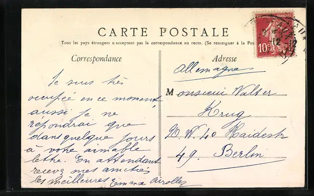 Personenbezogene Daten auf der Rückseite der Karte wurden durch blauen Textmarker unkenntlich gemacht. Die blauen Stellen sind auf die Vorderseite durchgeweicht und wirken sich negativ auf das Postkartenfoto aus