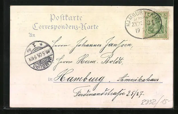 alte Ansichtskarte, gelaufen 1905, guter Zustand