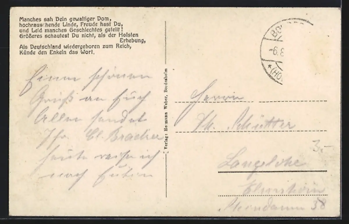 alte Ansichtskarte, gelaufen, Briefmarke entfernt, Eckknick oben re., Stempelspur, guter Zustand
