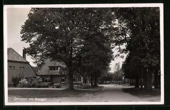 AK Borger, Strassenpartie mit Gebäudeansicht