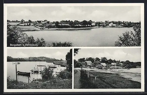 AK Borgstedt, Teilansicht, Uferpartie, Ortspartie