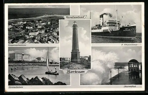 AK Borkum, Leuchtturm, Strand, Ortsansicht vom Flugzeug aus