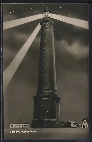 AK Borkum, Leuchtturm bei Nacht unterm Sternenhimmel