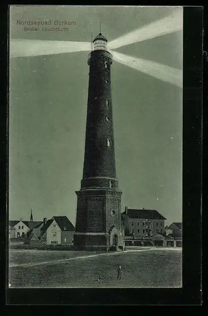 AK Borkum, Nordseebad, Grosser Leuchtturm bei Nacht