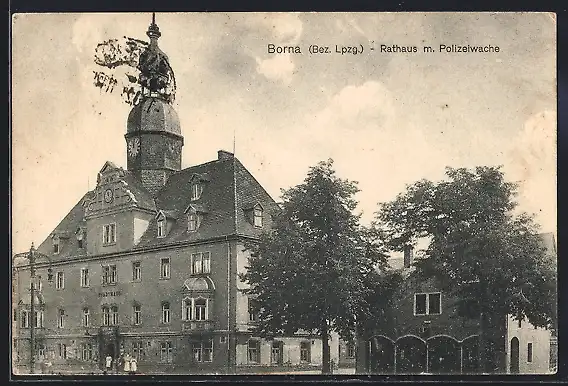 AK Borna /Leipzig, Rathaus mit Polizeiwache