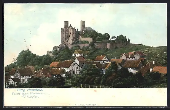 AK Bornhagen, Teilansicht des Ortes mit Burg Hanstein