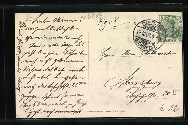 alte Ansichtskarte, gelaufen 1908, guter Zustand
