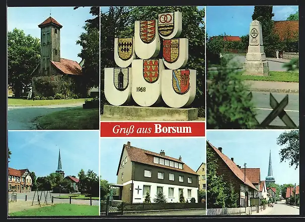 AK Borsum / Harsum, Ehrenmal, Kirche, Strassenansicht