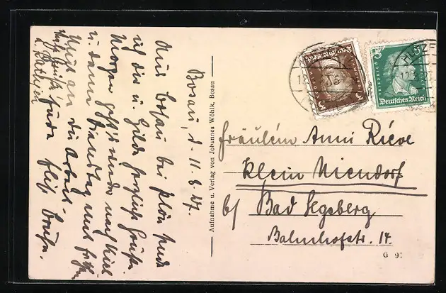 gelaufen 1927, Eckknick li. unten, Stempelspur, guter Zustand