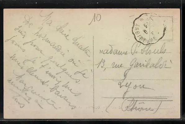 Personenbezogene Daten auf der Rückseite der Karte wurden durch blauen Textmarker unkenntlich gemacht. Die blauen Stellen sind auf die Vorderseite durchgeweicht und wirken sich negativ auf das Postkartenfoto aus