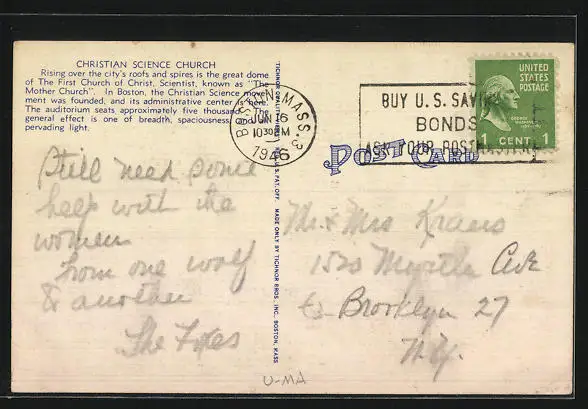 Ein Angebot in Ansichtskarten Massachusetts - 1.646 weitere Angebote in dieser Kategorie