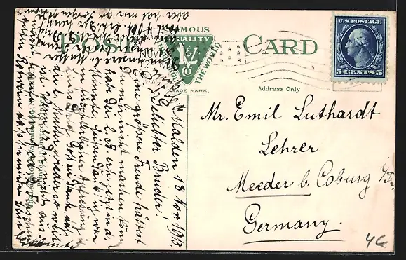 alte Ansichtskarte, gelaufen 1913, Eckknick li. oben, guter Zustand