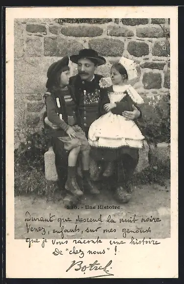 AK Botrel mit seinen zwei Töchtern auf dem Schoss