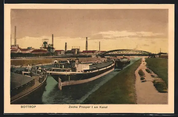AK Bottrop, Kohle-Zeche Prosper I. am Kanal, Frachtschiffe