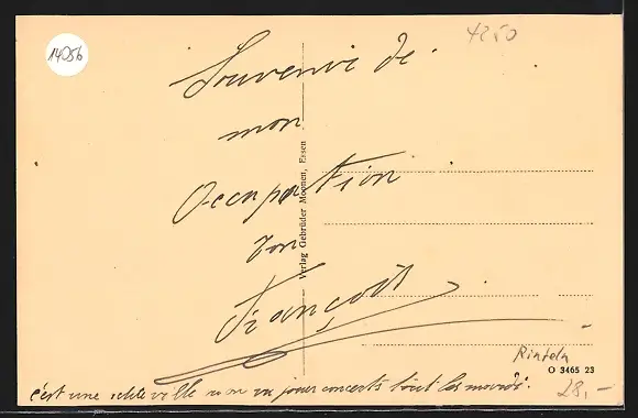alte Ansichtskarte, ungelaufen, rückseitig Klebe- und Papierreste, guter Zustand