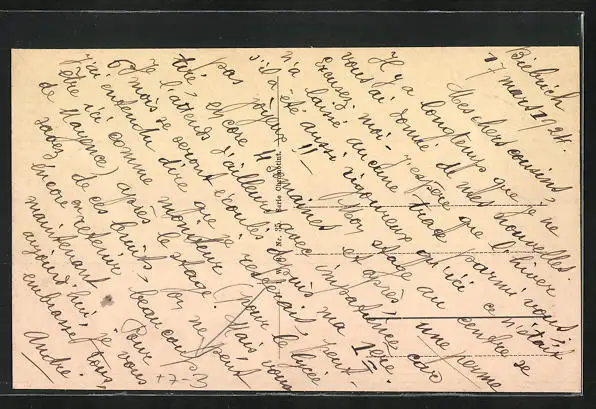 Personenbezogene Daten auf der Rückseite der Karte wurden durch blauen Textmarker unkenntlich gemacht. Die blauen Stellen sind auf die Vorderseite durchgeweicht und wirken sich negativ auf das Postkartenfoto aus