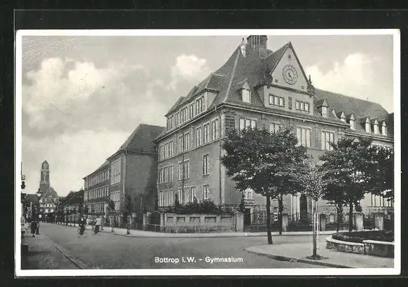 AK Bottrop i. W., Strassenpartie mit Gymnasium