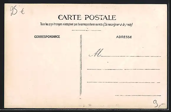 Personenbezogene Daten auf der Rückseite der Karte wurden durch blauen Textmarker unkenntlich gemacht. Die blauen Stellen sind auf die Vorderseite durchgeweicht und wirken sich negativ auf das Postkartenfoto aus