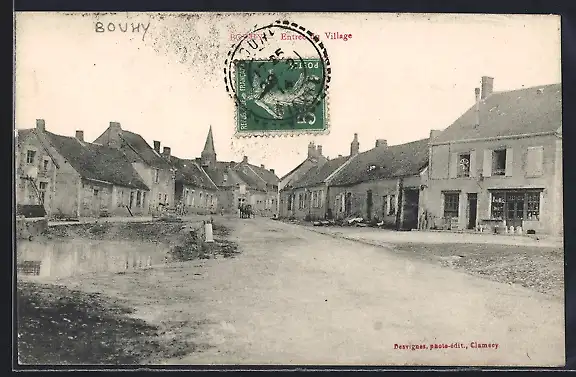 AK Bouhy, Entrée du village avec bâtiments anciens et route principale