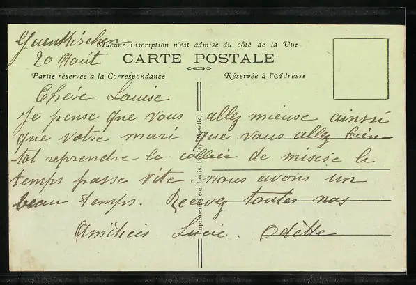 Personenbezogene Daten auf der Rückseite der Karte wurden durch blauen Textmarker unkenntlich gemacht. Die blauen Stellen sind auf die Vorderseite durchgeweicht und wirken sich negativ auf das Postkartenfoto aus