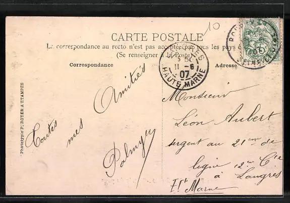 alte Ansichtskarte, gelaufen 1907, Stempelspur, guter Zustand
