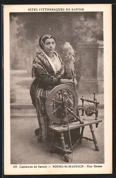 AK Bourg-St-Maurice, Spinnerin in Volkstracht