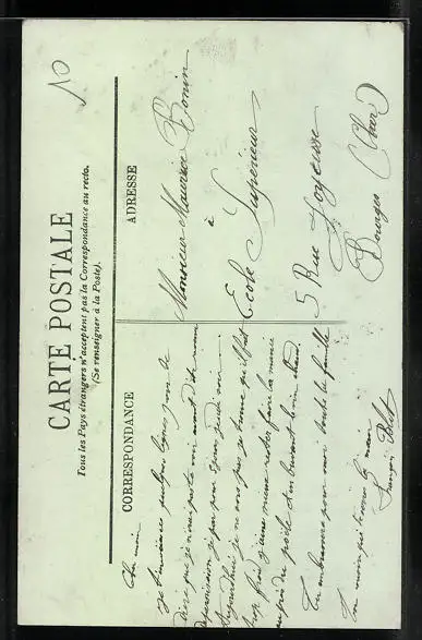 Personenbezogene Daten auf der Rückseite der Karte wurden durch blauen Textmarker unkenntlich gemacht. Die blauen Stellen sind auf die Vorderseite durchgeweicht und wirken sich negativ auf das Postkartenfoto aus