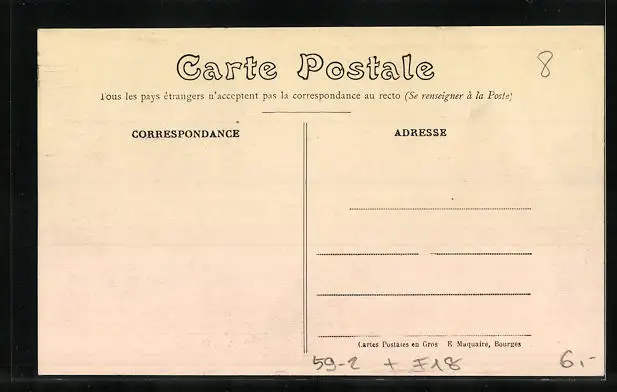 Personenbezogene Daten auf der Rückseite der Karte wurden durch blauen Textmarker unkenntlich gemacht. Die blauen Stellen sind auf die Vorderseite durchgeweicht und wirken sich negativ auf das Postkartenfoto aus