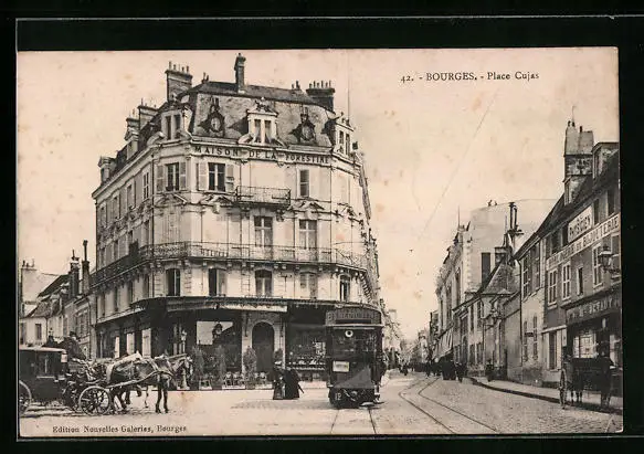 AK Bourges, Place Cujas, Strassenbahn
