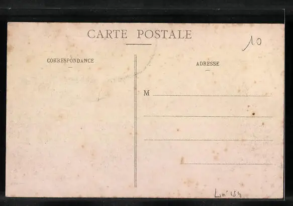 Personenbezogene Daten auf der Rückseite der Karte wurden durch blauen Textmarker unkenntlich gemacht. Die blauen Stellen sind auf die Vorderseite durchgeweicht und wirken sich negativ auf das Postkartenfoto aus