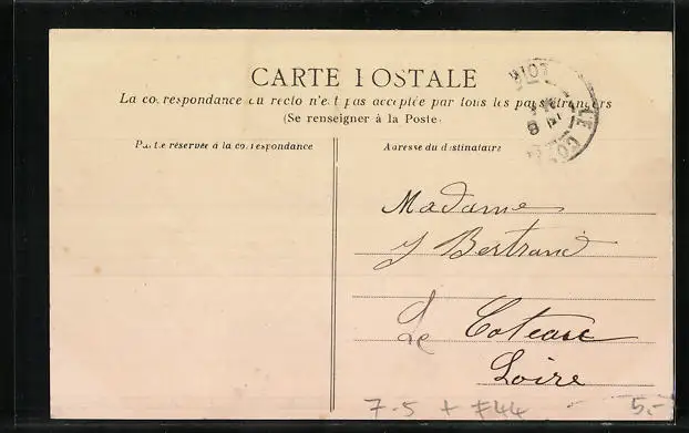 Personenbezogene Daten auf der Rückseite der Karte wurden durch blauen Textmarker unkenntlich gemacht. Die blauen Stellen sind auf die Vorderseite durchgeweicht und wirken sich negativ auf das Postkartenfoto aus