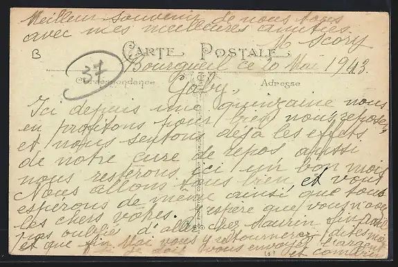 ungelaufen, Rückseite beschrieben 1943, guter Zustand