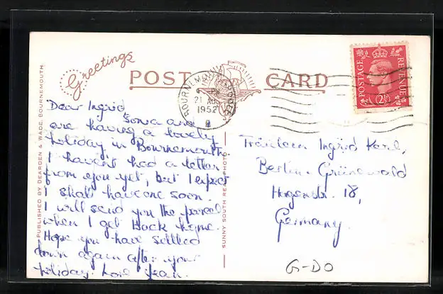 alte Ansichtskarte, gelaufen 1952, Eckknick li. oben, sonst guter Zustand