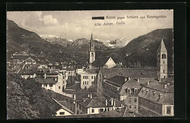AK Bozen, Ansicht gegen Schlern und Rosengarten