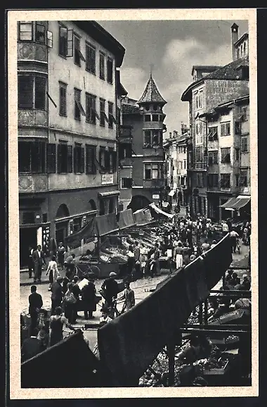 AK Bozen-Bolzano, Piazza Erbe, Obstmarkt mit Leuten