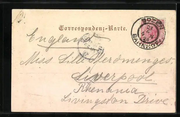 alte Ansichtskarte, gelaufen 1898, Eckknick li. oben, guter Zustand