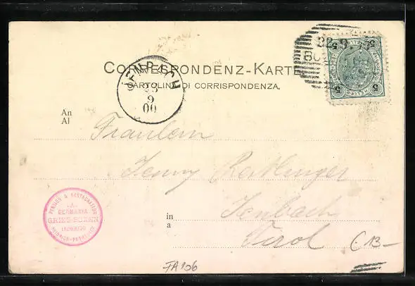 alte Ansichtskarte, gelaufen 1900, guter Zustand