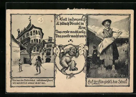 AK Bozen, Gasthaus Batzenhäusl, Bäuerin auf der Alm
